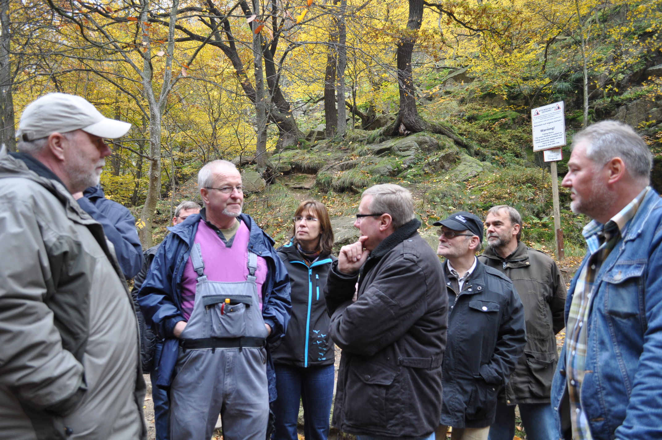 Interessiert ließ sich die Runde von den Bergwacht Mitgliedern alle Details, besonders nach dem Steinschlag im Bodetal Anfang Juli, erläutern. Fragen wurden stets kompetent beantwortet. Dabei stellte sich heraus das Naturwanderweg linkseitig vom Waldkater ausgehend gefährdeter ist als die rechte, momentan geschlossene Seite. Die linke Seite soll nach Plänen behindertengerecht ausgebaut werden. Dies würde den Naturcharakter zerstören und immense Kosten produzieren. Die rechte Seite ist aber dementsprechend familien-und auch für behinderte Menschen tauglich.